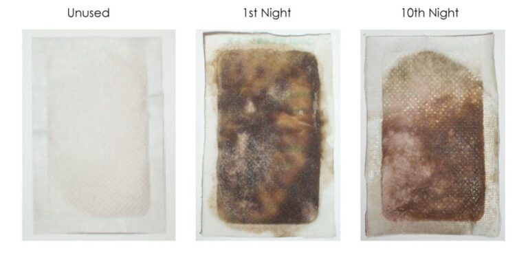 – Used patches will appear dark greenish or grayish as they absorb toxins and waste matter from your body.